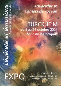 Les aquarellistes de l’association Aquarelle Passion – Labaroche exposent leurs aquarelles et leurs carnets de voyage à Turckheim. L’exposition se tient à la salle de la Décapole du 4 au 13 octobre 2024. Ouverte vendredi et samedi de 10h à 19h du dimanche au jeudi de 10h à 18h. L’entrée est libre.