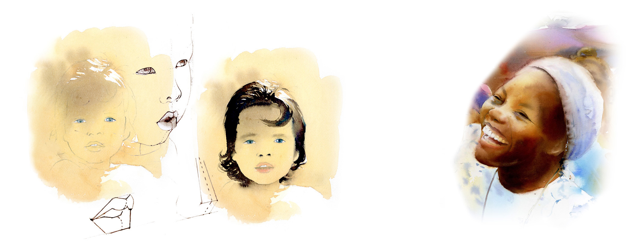 Portrait: dessin des éléments du visage, expression, carnation à l’aquarelle